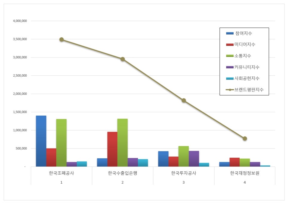 2025년 12월 기획재정부 공공기관 브랜드평판 순위는 한국조폐공사, 한국수출입은행, 한국투자공사, 한국재정정보원 순이었다.