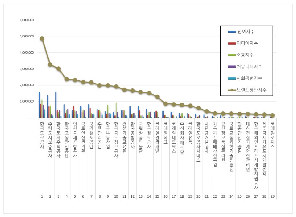 건축자재 상장기업 브랜드평판 분석은 참여지수, 미디어지수, 소통지수, 커뮤니티지수, 시장지수로 구분하여 브랜드평판지수를 산출하였다.